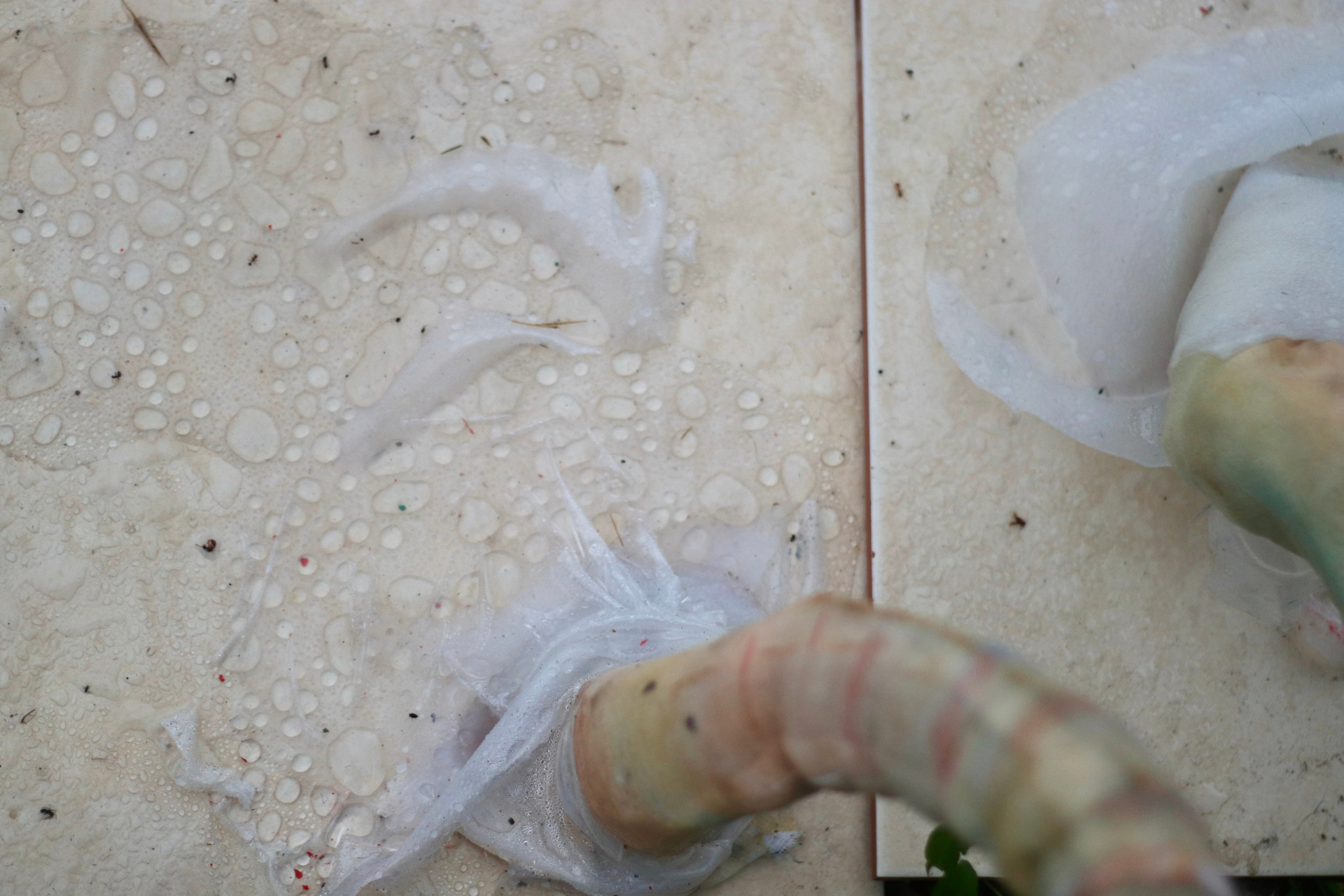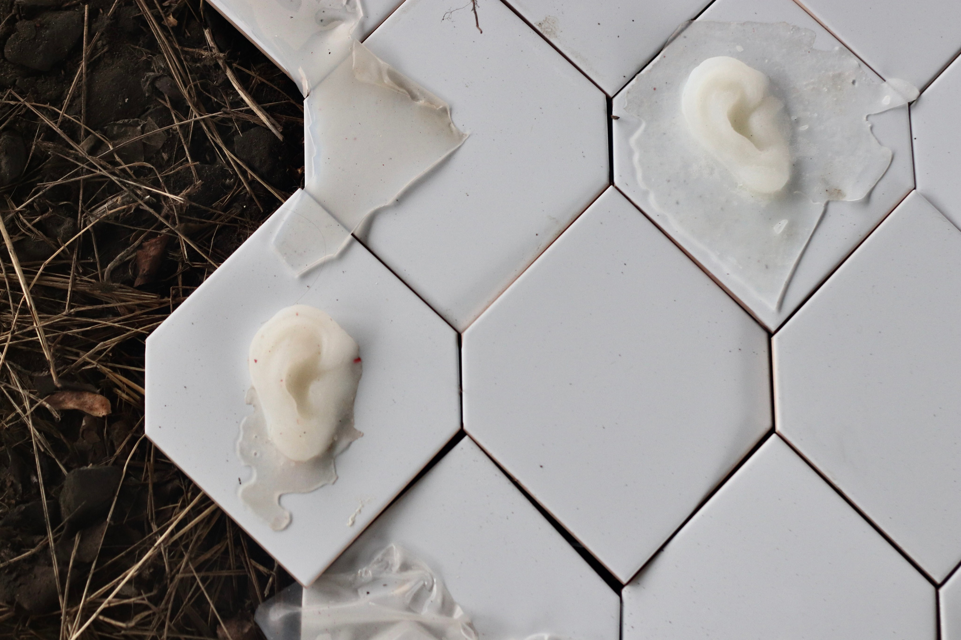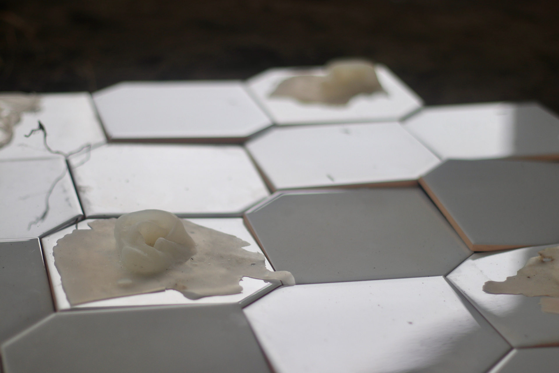 Проект представляет собой укладку художником плитки в разных участках маршрута биеннале. Керамическая плитка — простой и общеупотребимый материал для ремонта в квартире. Плитка выступает живым субъектом и по-своему адаптирована к новым условиям окружающей среды.