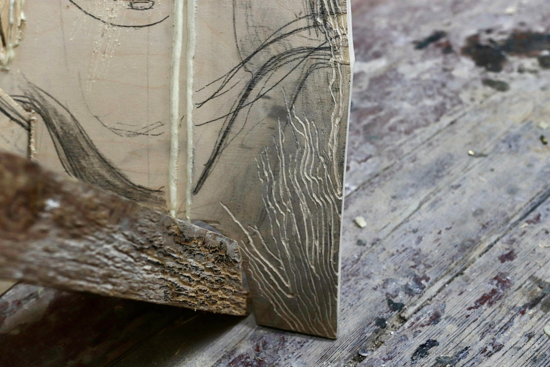 найденные обьекты, процарапывание, 7×180 см, 2025