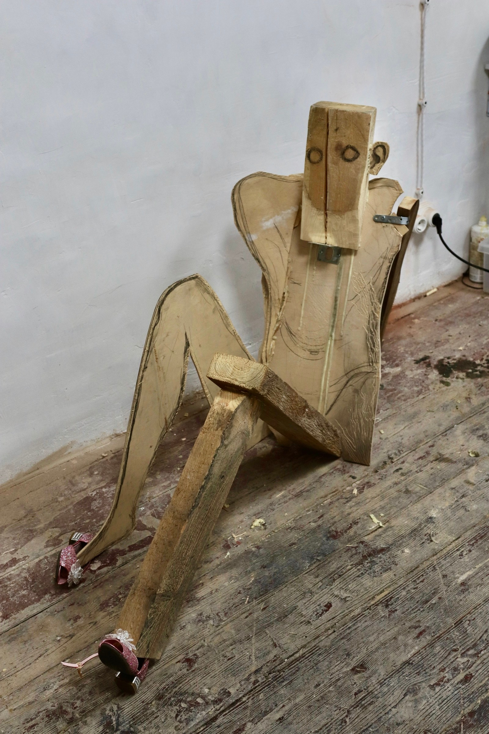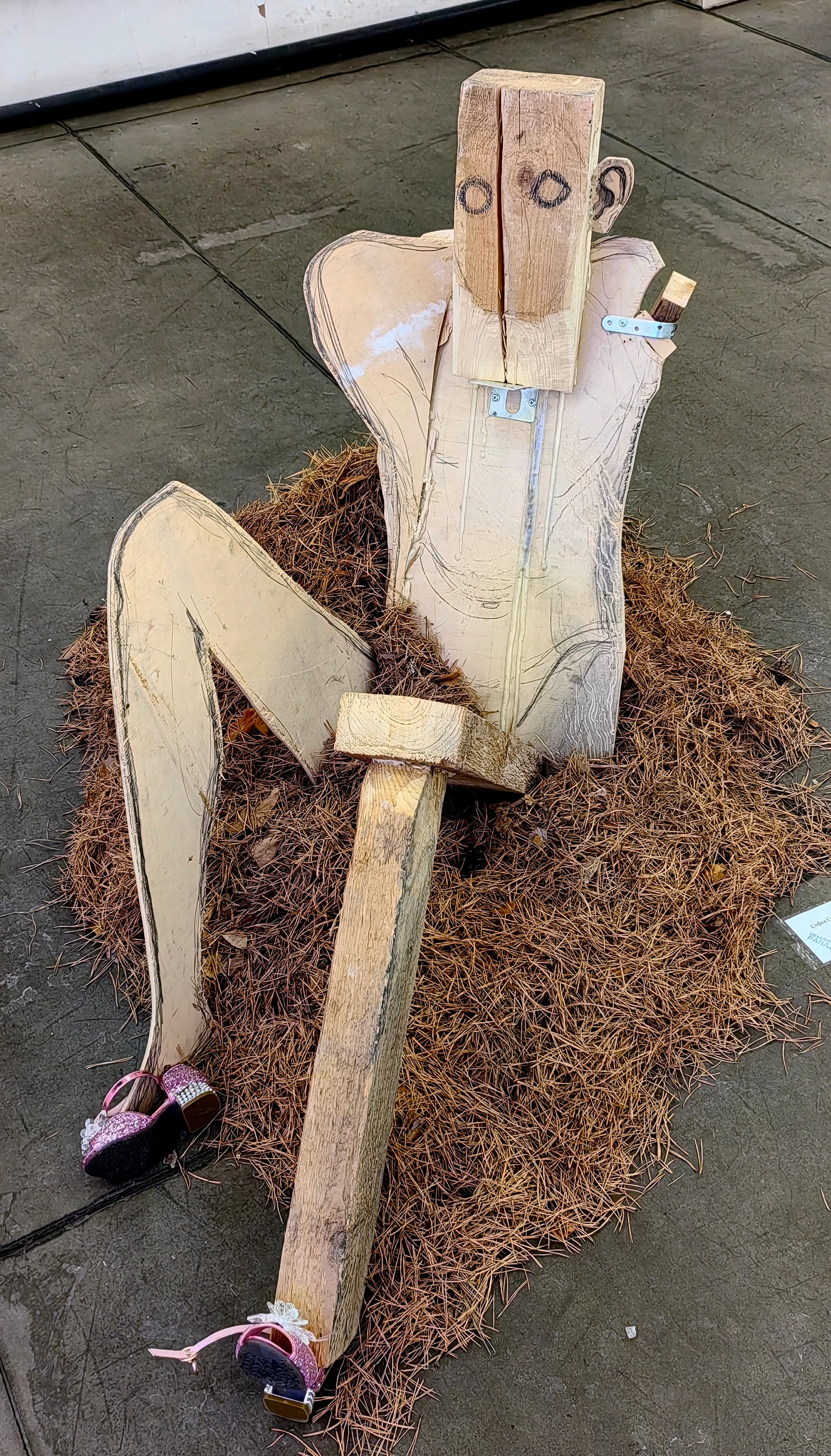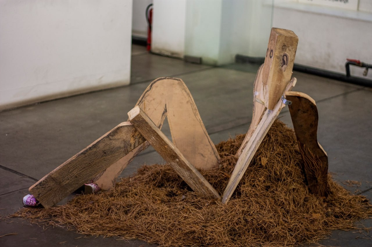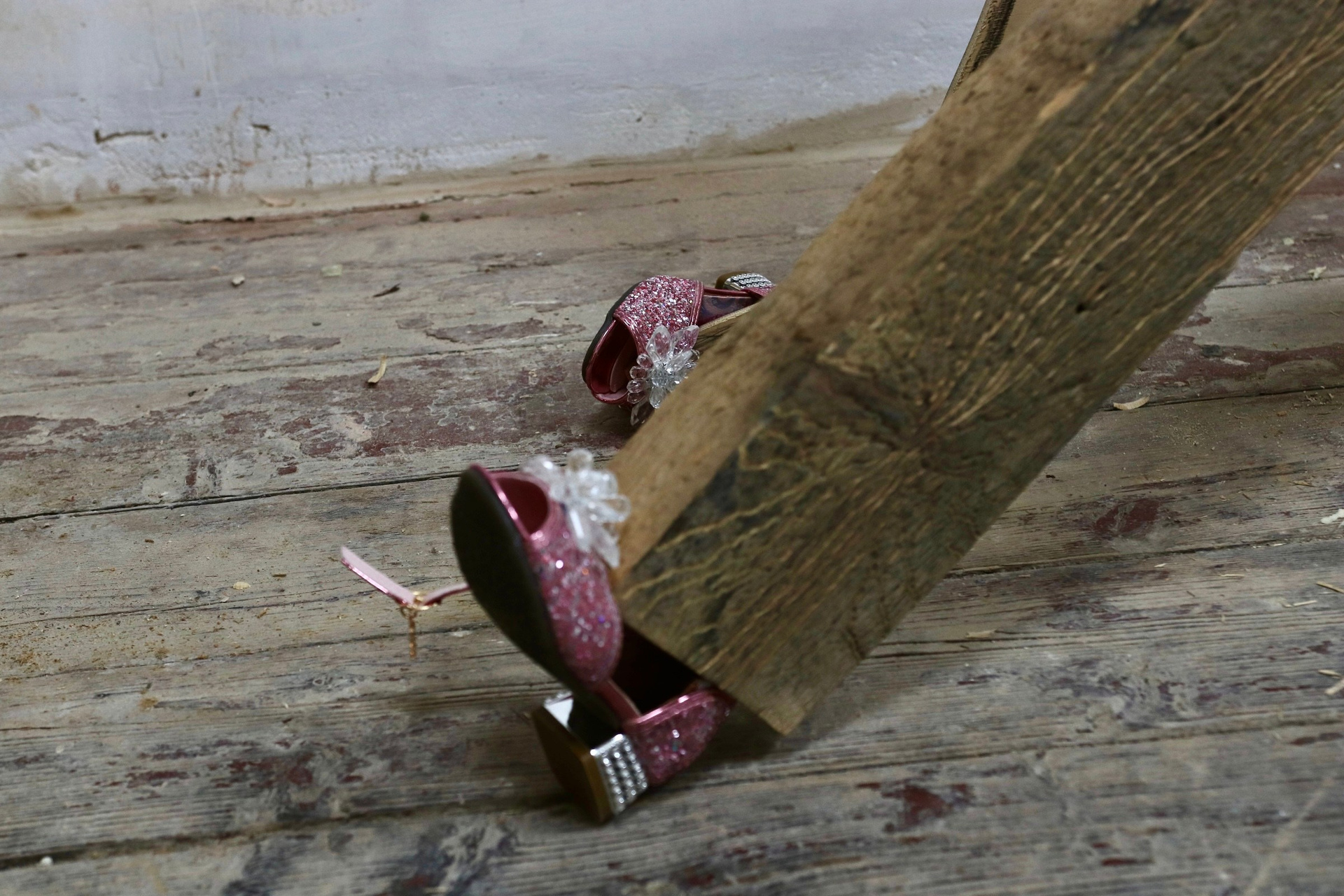 100*150*40, дерево, туфли детские блестящие, иголки.